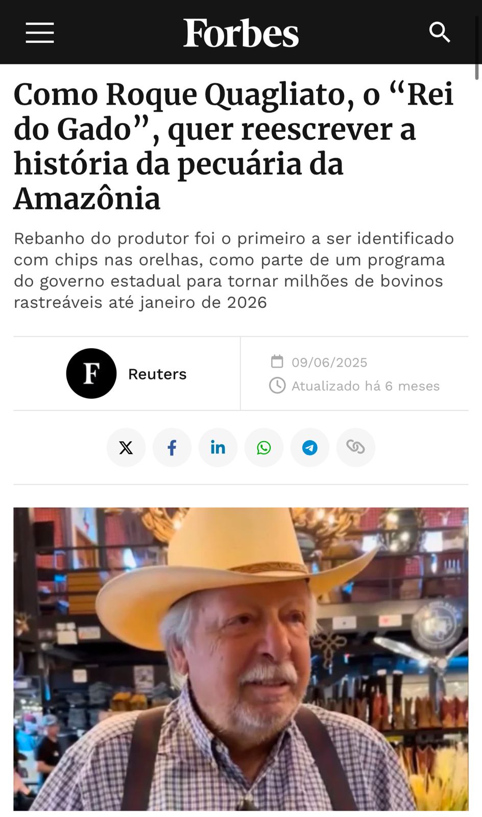 Aunque no es el hombre con más ganado del mundo, su nombre es referencia obligada en la ganadería brasileña, donde la prensa lo reconoce como el verdadero “Rey del Ganado”.