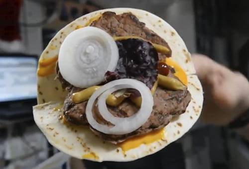 En días pasados, la Agencia Espacial Europea (ESA) compartió en su perfil de Instagram un video de una hamburguesa elaborada con carne de res rehidratada, tortilla mexicana y vegetales cultivados en la Estación Espacial Internacional (ISS).