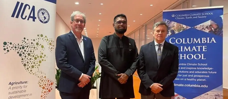 En el evento participaron el presidente de Guyana, Mohammed Irfaan Ali; el Director General del IICA, Manuel Otero; Jeffrey Shaman, Decano Interino de la Escuela de Clima de Columbia, una facultad multidisciplinaria de investigación de la crisis climática; y Cynthia Rosenzweig, científica investigadora principal del Instituto Goddard de Estudios Espaciales (GISS) de la NASA e Investigadora Científica Adjunta del Centro de Investigación de Sistemas Climáticos (CCSR) de la Escuela del Clima de Columbia.