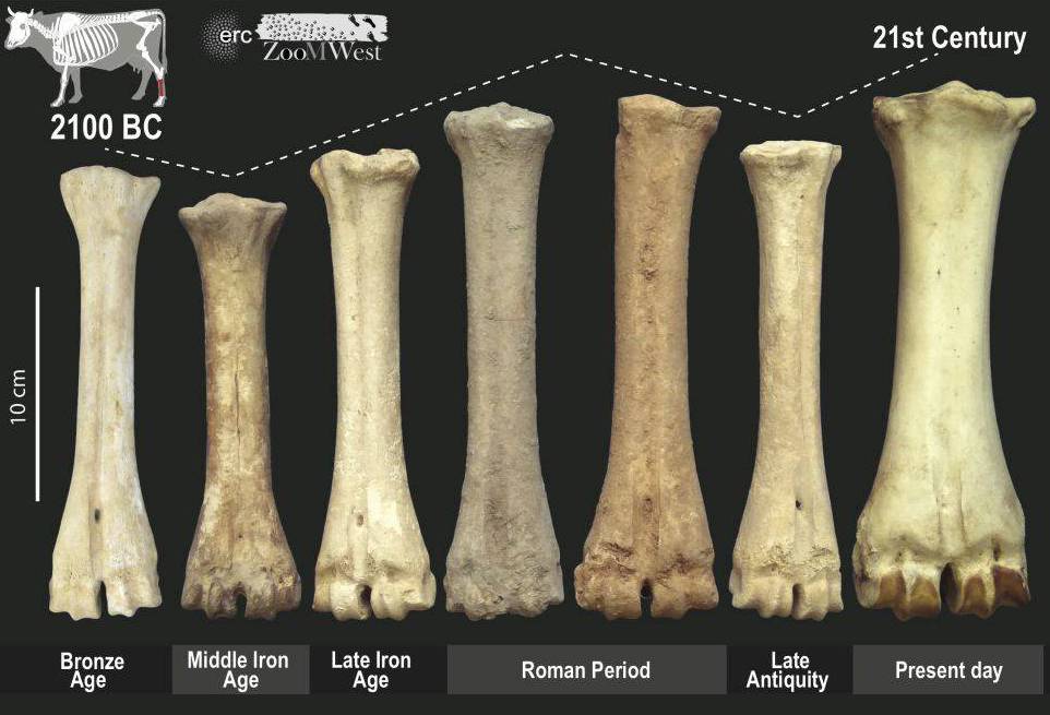 En cambio, durante la segunda Edad del Hierro y, sobre todo, en época imperial romana, aumentó el tamaño de los territorios políticos y la producción se orientó al mercado Mediterráneo y europeo. “Esto tuvo un fuerte impacto en la ganadería: durante el Imperio Romano aumentó la producción de vacas, cerdos y gallinas, y que el tamaño de las reses se incrementó en un 30 % respecto a las de la primera Edad del Hierro. Este mayor tamaño es comparable al de algunas reses actuales”, subraya Nieto Espinet.