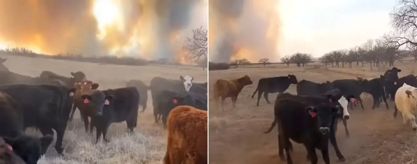 El fuego, que estalló el 26 de febrero, ha consumido más de 435.000 hectáreas y se propaga a una velocidad alarmante de aproximadamente 150 campos de fútbol por minuto, afectando ya 12.700 hectáreas en Oklahoma. Las imágenes desgarradoras muestran manadas de ganado huyendo del desastre y cuerpos de animales esparcidos por el suelo, víctimas de las llamas que avanzan sin piedad.