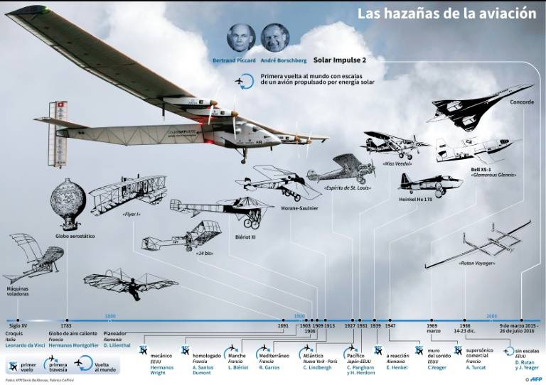 La hazaña de Bertrand Piccard y André Broschberg, quienes lograron dar la vuelta al mundo en un avión propulsado por energía solar, permite soñar con aparatos por completo ecológicos y silenciosos, pero esta perspectiva se encuentra aún muy lejana según los especialistas. "Muy pronto habrá pasajeros a bordo de aviones eléctricos que se recargarán en tierra", pronosticó Piccard, reconociendo no obstante que habrá que esperar para contar con aviones solares. Para llegar hasta ellos, habrá que superar numerosos desafíos tecnológicos. "La superficie de células (fotoeléctricas) necesaria para transportar a solamente dos humanos corresponde a la talla de un Airbus o de un Boeing, por lo tanto para un avión de línea es inconcebible", estima Vincent Jacques Le Seigneur, director del Observatorio de Energías Renovables. (Lea: Sin "ruido ni contaminación", Solar Impulse 2 completó vuelta al mundo) En cambio, continúa, "pueden imaginarse para mañana drones o pequeños aviones ultraligeros recargables en tierra con sistemas solares". Puesto que la revolución del Solar Impulse 2 no atañe tanto a la aviación sino a la energía en sí misma, en su opinión. "Es la prueba de que con la energía solar se pueden hacer cosas increíbles", afirma. La industria y la investigación aeronáutica trabajan desde hace tiempo sobre conceptos de aviones eléctricos, pero a una escala menos ambiciosa en cuanto al objetivo de franquear los primeros obstáculos que nos separan del avión completamente eléctrico. Todavía se trata de aviones que funcionen con energía eléctrica, entera o parcialmente, y no de aviones de línea o inclusive aviones livianos que lo hagan con energía solar, como el Solar Impulse 2. El aparato de Piccard y Broschberg pesa una tonelada y media, pero tiene la envergadura de un Boeing 747. Para concretar su hazaña, fue necesario dotarlo de unas 17 mil células fotovoltaicas sobre las alas, para alcanzar una velocidad de crucero de alrededor de 80 km. Además, cuenta con un cockpit de 3,8 m2 sin aire acondicionado ni calefacción, y está equipado con tubos de oxígeno para permitir respirar a los pilotos. Finalmente, para atenuar las temperaturas extremas, entre -40 y +40 grados Celsius, la cabina se encuentra recubierta de una espuma aislante. Además de estar lejos de las condiciones de confort de un A320 o un 777, los aparatos de mediano y largo recorrido de Airbus y Boeing, capaces de transportar entre 150 y casi 400 pasajeros a lo largo de miles de kilómetros en algunas horas, éstos vuelan a una velocidad diez veces superior al Solar Impulse 2. 'E-avión', por ahora de tamaño limitado "Hay que ir más allá y pensar las configuraciones de las aeronaves de manera diferente", con por ejemplo numerosos pequeños reactores repartidos sobre las alas. "El avión eléctrico es una ruptura tecnológica, puesto que no será suficiente para realizar transporte de masas simplemente con remplazar los motores térmicos actuales por otros eléctricos", explicaba recientemente Antoine Guigon, director de la prospectiva aeroespacial en el ONERA, el centro francés de investigación aeronáutica y especial. Pionero en materia de propulsión eléctrica en el sector aéreo, Airbus trabaja desde hace años sobre un concepto de pequeño avión construido en materiales compuestos destinado a las escuelas de aviación liviana. El E-Fan, un biplaza eléctrico que "prefigura la aviación más eléctrica de mañana", según el constructor, que será comercializado a fines de 2017. Pero, si bien obedece a consideraciones medioambientales y permite comenzar a jalonar la aviación eléctrica, por ahora dispone de capacidades limitadas. Por el momento, el E-Fan puede volar durante una hora y dispone media hora más de autonomía suplementaria. Así, este avión logró atravesar La Mancha al igual que lo hiciera Louis Blériot en 1909, una hazaña lejana en el tiempo respecto a los progresos que fueron necesarios antes de poder transportar pasajeros. (Lea: El Solar Impulse 2, desafío físico y psicológico para los pilotos) Se pueden prever soluciones intermedias a corto plazo, como la propulsión eléctrica híbrida, con motores térmicos que contengan generadores eléctricos capaces de brindar la energía necesaria para hacerlos funcionar. "Es probablemente la solución transitoria que permitirá pasar de lo completamente térmico a lo térmico-eléctrico y asegurar vuelos de larga distancia y con mucha carga útil", según Guigon. Mientras esperan, los grandes constructores aeronáuticos trabajan en soluciones "incrementales" que permitan mejorar el desempeño de los aviones y reducir el consumo de combustible, y en consecuencia la huella de carbono. Materiales compuestos, impresión en 3D, y biocombustibles constituyen por ahora las principales pistas a seguir.
