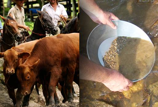 La minería de gas, oro, carbón sin regulación, por mencionar algunas, genera material de arrastre que cae a ríos en los cuales los animales se hidratan sin que se conozca qué residuos se hallan en el líquido que pudieran afectar la salud de los vacunos, y con eso, la producción de carne y leche.