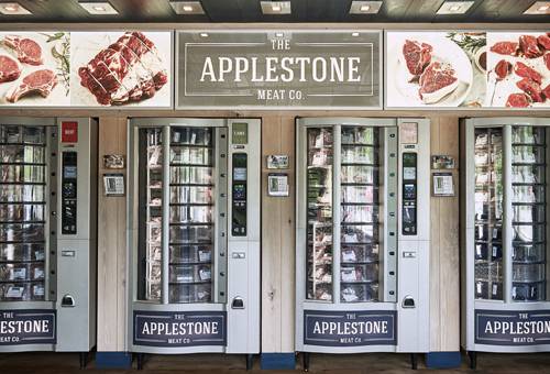 En Estados Unidos, la empresa Applestone Meat Company de Nueva York presentó hace tres años este negocio, instalando inicialmente dos máquinas que ofrecían carne de vacuno, cerdo y cordero en un empaque similar al del supermercado con la ventaja de que no tenía horario de cierre.