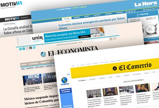 Los recientes focos de la enfermedad en nuestro país no solamente provocaron el cierre de varios mercados internacionales, sino que también ocasionaron una emergencia en naciones de Sudamérica y Centroamérica. Tan pronto se conoció la noticia del primer foco de fiebre aftosa en Colombia luego de 8 años de haber obtenido el estatus libre de la enfermedad, países como Chile y Perú tomaron medidas para frenar la comercialización de ganado vivo y productos cárnicos y lácteos. A esta determinación se sumaron otros como Ecuador, Panamá, Curazao y Rusia, que se había convertido en el principal comprador de carne con alrededor del 30% de las exportaciones. (Informe: Se cumple un mes del primer brote de fiebre aftosa) Por su parte, México suspendió de manera preventiva la importación de productos lácteos, a pesar de que Colombia no vendía a ese mercado. En un comunicado, el Servicio Nacional de Sanidad, Inocuidad y Calidad Agroalimentaria (Senasica) informó que hay 6 pasteurizadoras en Cundinamarca que tenían autorización para exportar. Sin embargo, con la aparición de 2 focos en este departamento, la entidad sanitaria mexicana determinó suspender la certificación. Esto obedece a una férrea posición de los productores de evitar la comercialización de animales y productos que puedan ser vehículo de la fiebre aftosa, pues el país erradicó la enfermedad en 1954. En Centroamérica, países como Nicaragua y Costa Rica han evidenciado su malestar por los recientes brotes, como lo han hecho los gremios ganaderos y las autoridades de ambos países. (Lea: ¿Qué solicitó Fedegán a COSALFA en la pasada reunión extraordinaria?) Por ejemplo, en Costa Rica, el Servicio Nacional de Salud Animal (SENASA), incrementó las medidas preventivas por el brote en Arauca, reforzando la vigilancia en fronteras a pesar de que no importa ningún producto de ganado. Además, en este país nunca se ha detectado el virus. En cuanto a Nicaragua, los ganaderos pidieron redoblar controles en todas las entradas al país para evitar el ingreso del agente infeccioso. La Comisión Nacional Ganadera de Nicaragua, Conagan, pidió no permitir el ingreso de productos cárnicos y lácteos procedentes de América del Sur, mientras que el Instituto de Protección y Sanidad Agropecuaria, IPSA, informó que ya estaban tomando precauciones para evitar el contagio. Según René Blandón, presidente de Conagan, Nicaragua envía carne procesada y ganado en pie a Venezuela, mientras que ellos no le compran nada, por lo cual el riesgo está minimizado. (Lea: Aftosa: un desastre anunciado en COHEFA 13) En Suramérica, países como Ecuador, Perú y Chile restringieron las importaciones que tenían desde Colombia, mientras que Argentina brindó su cooperación en la lucha contra la enfermedad. En efecto, el Gobierno argentino ofreció su ayuda para resolver la crisis. El ministro de Agroindustria, Ricardo Buryaile, se comunicó con la cartera de Agricultura en Colombia para aportar la experiencia de este país y erradicar el virus. "Ofrecimos ayuda a través de personal técnico como así también compartiendo la exitosa experiencia argentina de la lucha contra la fiebre aftosa en la que están involucrados el sector gubernamental y el privado", expresó Buryaile, según una nota de prensa de la cartera ministerial. Finalmente, una comisión internacional encabezada por el director del Centro Panamericano de Fiebre Aftosa (Panaftosa) y la Organización Mundial de Sanidad Animal (OIE) apoyará y acompañará a Colombia en la erradicación del brote de fiebre aftosa. De acuerdo con Luis Humberto Martínez, gerente del ICA, el Gobierno y la autoridad sanitaria esperan que el país recupere su estatus libre de la enfermedad en un plazo de 3 meses. (Lea: ¿Por qué se han presentado de nuevo brotes de aftosa en Colombia?)