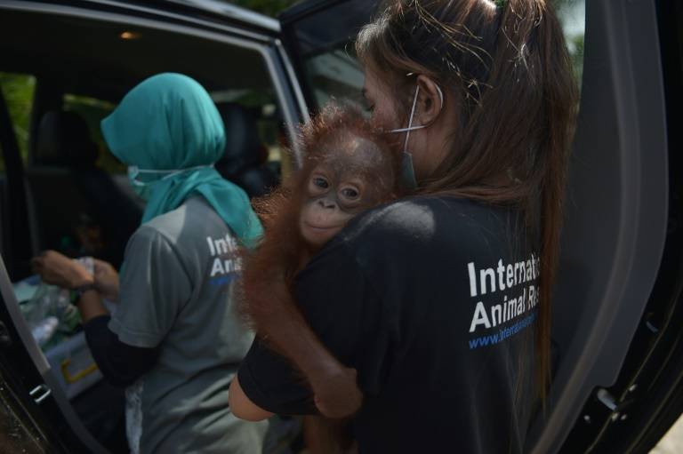 Un bebé orangután de Borneo adoptado como animal de compañía en una familia, según una práctica frecuente en Indonesia, fue rescatado por unos defensores de los animales que lo quieren ayudar a regresar a su hábitat natural. Vena, una hembra de 7 meses, vivía en casa de una habitante a pesar de la prohibición de esa práctica, en el distrito de Kendawangan, en la parte indonesia de la isla de Borneo. Unos habitantes del lugar hicieron la denuncia al Centro Internacional de Socorro para Animales, que se apoderó del simio a principios de mes, indicó la ONG. Desde entonces, Vena pasó al cuidada del personal de la ONG, que le da leche con vitaminas y le cambia los pañales. (Lea: "El chimpancé de los selfis" de Irak se refugia en Kenia) El año pasado, la ONG rescató a 22 orangutanes obligados a vivir en cautiverio como animales de compañía o cuyo hábitat natural había sido destruido por inmensos incendios forestales, a menudo provocados para aumentar el tamaño de plantaciones de aceite de palma, del que Indonesia es primer productor mundial. Aunque sean tratados con cuidado, como era el caso de Vena, los defensores de los animales insisten en que constituye una práctica negativa porque posteriormente resulta difícil para los monos sobrevivir en un medio natural, ya que les hace perder los instintos.