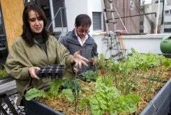 "Es una ventana hacia el futuro y es importantísimo que nos reconectamos con la tierra", comenta mientras gotas de lluvia caen sobre los brotes de su huerto urbano.