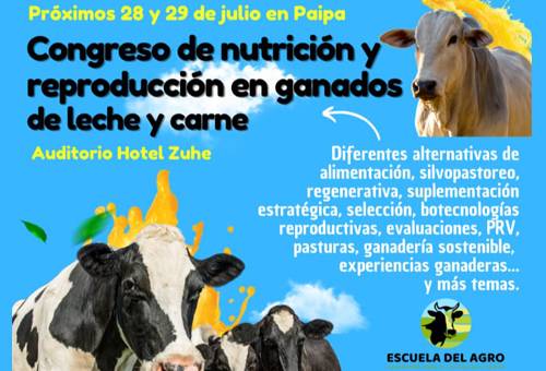 Alístese para acudir al Congreso de Nutrición y Reproducción en ganados para leche y carne donde 14 investigadores y ganaderos contarán sus experiencias. Esta es una gran oportunidad para que ganaderos y profesionales aprendan e intercambien conocimientos los días 28 y 29 de julio en Paipa (Boyacá).