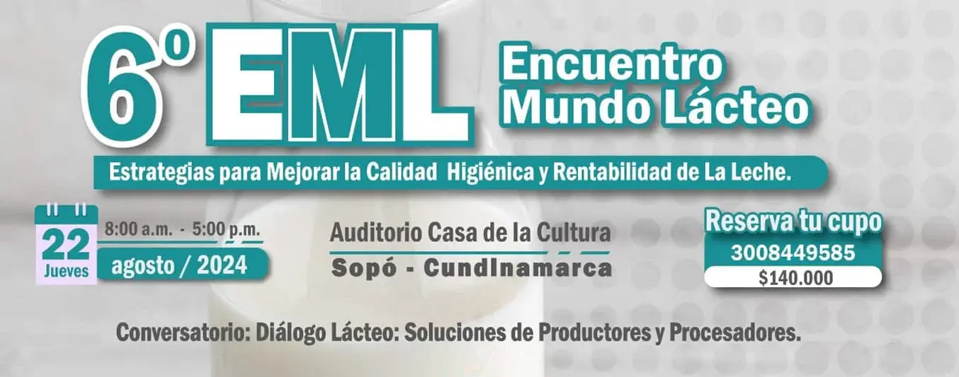 El próximo 22 de agosto, la Casa de la Cultura de Sopó (Cundinamarca) será el escenario del 6° Encuentro Mundo Lácteo (EML), un evento crucial para todos los actores de la cadena láctea en Colombia. Bajo el lema «Estrategias para mejorar la calidad higiénica y rentabilidad de la leche», este encuentro promete ser una jornada llena de conocimiento, innovación y acercamientos entre actores del sector.