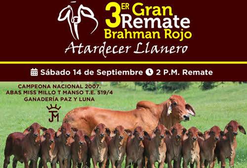 Este 14 de septiembre se estará realizando en Villavicencio el 3er Gran Remate de Brahman Rojo, Atardecer Llanero que quiere reunir a toda la familia en torno a un mismo fin, la pasión por la ganadería.