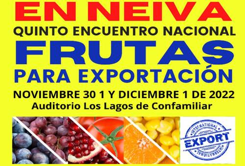 El Quinto encuentro nacional de frutas para exportación se realizará el auditorio los Lagos de Confamiliar, con la participación de catorce conferencistas de diferentes regiones del país, productores y exportadores y una rueda de negocios y alianzas productivas.