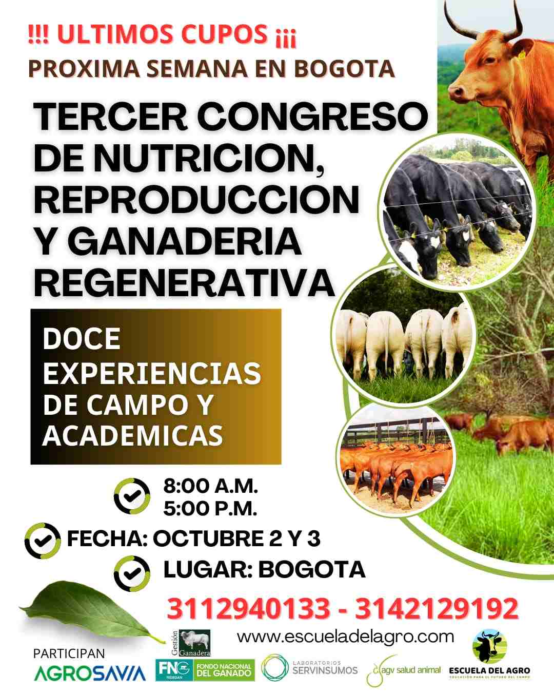 Con una combinación de experiencias que integran nutrición, reproducción, administración y ganadería regenerativa, entre otros temas, se llevará a cabo el Tercer Congreso de ganadería sostenible, los días 2 y 3 de octubre en Bogotá.