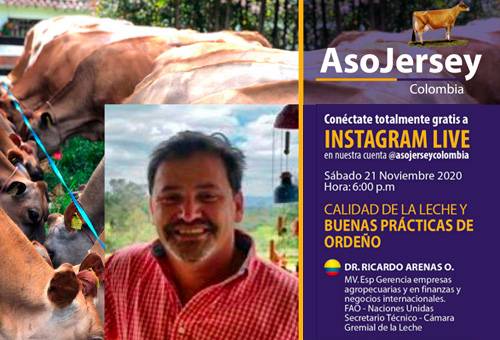 La Asociación Colombiana de Criadores de Ganado Jersey (Asojersey) está organizando una charla que será dirigida por el consultor agroindustrial y experto en calidad de leche Ricardo Arenas, que se llevará a cabo este sábado 21 de noviembre por Instagram Live.x