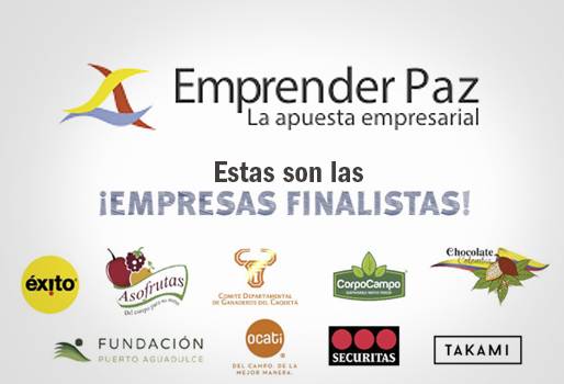 Hoy se dará a conocer en el Club El Nogal, a las 7 pm, quién será la empresa que será galardonada con el premio Emprender Paz. En la lista figura el Proyecto del Comité Departamental de Ganaderos del Caquetá Desde el 2007 un total de 541 proyectos empresariales de distintos, sectores y zonas del país han participado y 40 organizaciones han recibido este reconocimiento. Es una iniciativa que busca exaltar, socializar y fortalecer experiencias empresariales sostenibles que aportan a la construcción de paz en Colombia. Son nueva las empresas finalista: Éxito, Asofrutas, Comité Departamental de Ganaderos del Caquetá, Corpocampo, Chocolates Colombia, Fundación Puerto Agua Dulce, OCATI, Securitas y Takami.