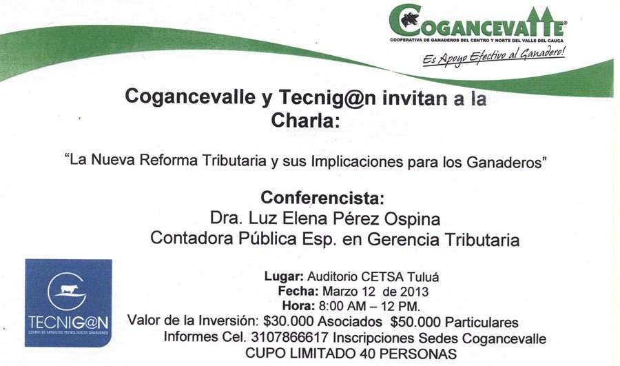 Durante el evento, que se realizará en el auditorio de la Compañía de Electricidad de Tuluá, CETSA, la contadora pública, Luz Elene Pérez Ospina, especialista en gerencia tributaria, contestará todas las dudas que los ganaderos presenten tengan sobre la reforma.