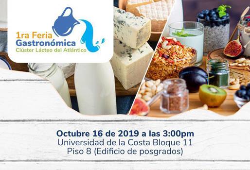 Hoy miércoles se llevará a cabo la primera Feria Gastronómica del Clúster Lácteo del Atlántico en la Universidad de la Costa en Barranquilla. Rueda de negocios, charla sobre marketing gastronómico y show gastronómico, son algunas de las actividades que se llevarán a cabo en este evento.