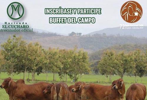 El 29 de noviembre se estará llevando a cabo el Buffet del Campo organizado por la Hacienda El Cucharo en el marco de la 72 Feria Nacional en Girardot. Durante este evento, los ganaderos podrán compartir todas las bondades que esta hacienda, que ha trabajado en la crianza de Brahman rojo, contando con más de 50 donadoras elite en el país. (Lea: Preparación en la ganancia de peso para animales Brahman de exposición)
