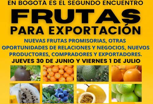 En Bogotá realizarán el segundo encuentro “Frutas para exportación” para tener nuevas oportunidades de relaciones y negocios con estas frutas. Conozca cuál es la agenda del encuentro que se realizará este jueves 30 de junio y viernes 1 de julio.