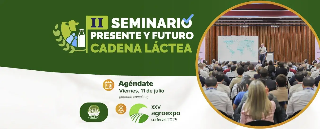 El próximo 11 de julio en el marco de Agroexpo 2025, Analac realizará el II Seminario Presente y Futuro de la Cadena Láctea en el auditorio principal de Corferias. Este evento propiciará el encuentro de más de 300 productores de leche, empresas de insumos agropecuarios, industria procesadora, sector público y medios de comunicación.