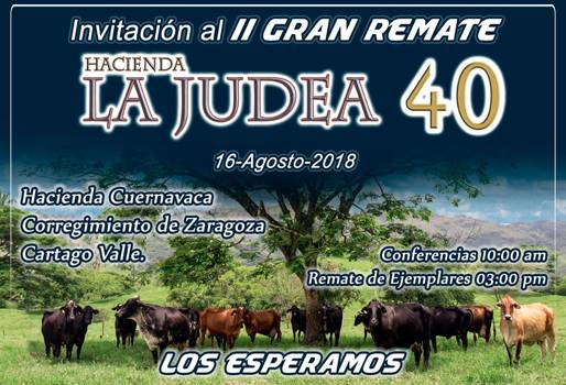 Esta reconocida ganadería ubicada en el Valle del Cauca ofrecerá una selección de los mejores ejemplares bovinos para producción de leche en trópico este jueves 16 de agosto, que incluirá 3 conferencias de la más alta calidad para los productores pecuarios. Con una tradición de más de 40 años en la cría de ganado cebú de razas Gyr, Brahman y Guzerá, y acreditada como una de las mejores lecherías de la región y el país por su vocación lechera, la Hacienda La Judea ha preparado el 3er día de campo y el 2do Gran Remate. “Vamos a comercializar más de 80 animales, la mayoría son novillas de vientre y hembras de levante, tanto lotes de cabezal como de potrero”, detalló Alejandro Gómez, gerente de la hacienda. (Lea: En agosto se celebrarán las más destacadas ferias ganaderas) El evento comenzará con una jornada académica a las 10 de la mañana, con la primera conferencia “Impacto económico de la IATF en la ganadería” a cargo del médico veterinario de Brasil, Evandro Davanco Ferreira de Souza. A las 11:20 am, el epidemiólogo y consultor para MSD Salud Animal, Bernardo Guerrero Mateus, dictará la charla “Vacunología en neonatos”, y luego del receso, se llevará a cabo la tercera disertación “La vaca lechera en el trópico bajo colombiano”, de parte de Juan Pablo Muriel Arévalo, de la empresa Genética Selecta S.A. Al respecto, la gerente general de la comercializadora de genética bovina, Laura Quiceno, reveló que esta es la primera vez que apoyan a La Judea en la organización del evento y que esperan una alta presencia de productores. (Lea: Así se aprovechan las cualidades del Girolando en Colombia) “Nosotros estamos patrocinando el evento. La Judea es una ganadería importante, que en los últimos años ha utilizado nuestra genética y han están contentos con los resultados de los cruces. Sin duda alguna, esta es una finca ejemplo para el resto del país”, manifestó Quiceno. A las 3 de la tarde inicia el gran remate, que en su primera versión tuvo un éxito rotundo, con la subasta de todos los lotes. En esta ocasión, la empresa Suganorte estará encargada de operar el remate, que será dirigido por el martillo más famoso de Colombia, Ricardo Barreneche, y con su firma Los Martilleros. “Son 43 lotes Gyr, Girolando y Guzolando, con un par de lotes sorpresa. Tenemos la expectativa de que vendrán ganaderos de todo el país y también algunos extranjeros”, aseguró Alejandro Medina, gerente de Suganorte. (Lea: Así será el remate de la 3ra Feria Agroindustrial del Eje Cafetero) Para conocer más sobre el remate, consulte la página web www.haciendalajudea40.com o el perfil en Instagram, o llame a los teléfonos 3128333481 y 3136490050.