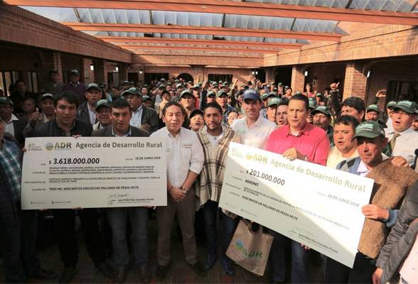 En un día histórico para el campo boyacense, el gobernador Carlos Amaya y el presidente de la Agencia de Desarrollo Rural, Juan Pablo Díaz Granados, entregaron recursos por el orden de los $3.819 millones a los sectores papicultor y lácteo. Dichos dineros son el producto de los compromisos que el Gobierno Nacional adquirió en el marco del Paro Agrario del 2013, y se cristalizan luego del diálogo y el trabajo en equipo en varias mesas y reuniones en el Ministerio de Agricultura, llevadas a cabo en el 2017. (Lea: "2 años después del paro agrario los avances son pocos", Dignidades) Estas son las primeras inversiones que se materializan con respecto a los compromisos adquiridos durante dicha movilización social. La entrega se desarrolló en las instalaciones de Usochicamocha, en Duitama, donde cerca de 130 productores de la región y representantes de las 19 asociaciones que conforman Dignidades Agropecuarias se hicieron presentes para recibir el cheque con recursos que serán destinados a la compra de 19 bancos de maquinaria, destinados a la compensación para productores de papa. De igual forma fueron entregados $360 millones para apoyo y fortalecimiento del sector lácteo. El gobernador Amaya destacó la importancia de este hecho. “Fueron más de 100 reuniones en las que estuvimos acompañando a los líderes del Paro Agrario buscando esta reparación, y hoy podemos contarles a ustedes esta gran noticia: la adquisición de 19 bancos de maquinaria que se entregarán a quienes más lo necesitan, nuestros agricultores. Estos se suman a los 78 que, desde el gobierno de Boyacá, tenemos listos para avanzar con pasos firmes en la modernización del sector agropecuario boyacense”. (Lea: Por paro agrario se pierden más de un millón de litros de leche diarios) Por su parte, el presidente de la Agencia de Desarrollo Rural, manifestó su satisfacción, ya que “es un proyecto que nos llena de alegría, el cual beneficiará a más de 350 familias campesinas del departamento y que brindará las oportunidades al sector, sumado a los esfuerzos y las obras que viene logrando y concretando el Gobierno de Boyacá”. Estas compensaciones se dan debido a los efectos negativos que causó en los agricultores boyacenses, la importación de papa y leche en los meses y años anteriores al Paro Agrario del 2013.