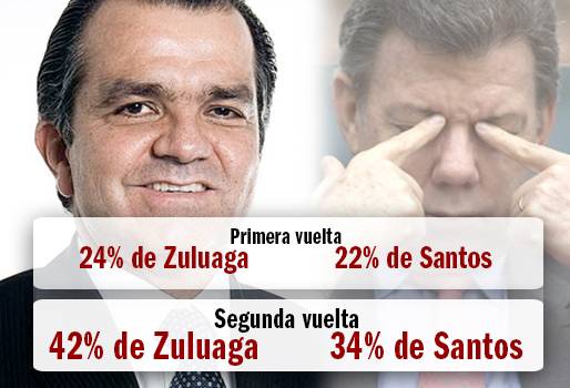Las cifras entregadas por la compañía de investigación y consultoría reflejan que si las votaciones se realizaran hoy, el 24% de los colombianos apoyarían a Zuluaga, mientras que Santos le seguiría con un 22%, lo que conllevaría a una segunda vuelta que se realizaría el próximo 15 junio.