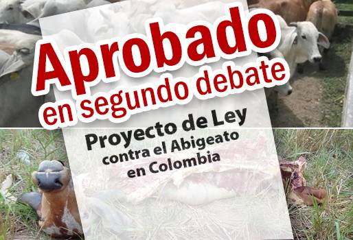 El pasado jueves 15 de junio, la plenaria del Senado aprobó en segundo debate el proyecto de ley de la senadora Nohora Tovar Rey, del Centro Democrático, que busca endurecer las penas contra el robo de animales y el carneo. La alarma que ha generado el incremento de este flagelo motivó a la senadora a promover una ley para modificar el Código Penal y crear los tipos penales del abigeato y el abigeato agravado. Según la congresista, esta iniciativa dará un alivio a miles de ganaderos colombianos que se están viendo afectados por el hurto de semovientes y por el sacrificio clandestino. (Lea: Opinión dividida entre ganados sobre proyecto que castiga abigeato) “Celebro la aprobación en segundo debate de nuestro proyecto de ley que busca crear el delito de abigeato y combatir esta modalidad criminal. El proyecto incrementará las penas de 48 a 96 meses con el fin de que no sea excarcelable”, declaró Tovar Rey. Uno de los reclamos de mayor insistencia entre los ganaderos es la falta de herramientas de las autoridades para judicializar a las personas que cometen este delito. Son constantes las quejas de los productores que advierten que los delincuentes son dejados en libertad en corto tiempo y vuelven a hacer de las suyas. La congresista explicó que la creación de los 2 nuevos tipos penales reducirá la interpretación de los operadores de justicia, permitiendo que “acusen de manera certera” a los sindicados. Asimismo, la propuesta plantea multas de 25 a 50 salarios mínimos mensuales para los que sean judicializados por el delito. (Lea: Hoy se lleva a cabo debate sobre abigeato y carneo en el Congreso) “Actualmente las pérdidas por este tipo de hechos superan los $26 mil millones al año”, agregó la senadora, consciente de los graves perjuicios que causa este delito para los ganaderos, que dedican millones de pesos y años de trabajo para sacar adelante a sus animales. Sin lugar a dudas, el abigeato y el carneo han incrementado de forma dramática en los últimos años. Basta ver las cifras de sacrificio legal bovino para darse cuenta de que el delito va en franco aumento. En lo corrido del año, el sacrificio ha registrado una caída del 13 % frente al 2016, mientras que el consumo se ha mantenido, lo cual indica que el fenómeno del abigeato está ganando terreno. (Lea: “Preocupa el poco interés del Gobierno frente al abigeato”: Lafaurie) José Félix Lafaurie Rivera, presidente ejecutivo de la Federación Colombiana de Ganaderos, Fedegán, ha sido uno de los voceros más insistentes en denunciar el creciente número de hurtos a animales que se está presentando en el campo. “Es una problemática que se salió de control, por lo que se requieren acciones contundentes que les garanticen a los ganaderos que los delincuentes no les van a seguir robando animales noche tras noche como viene ocurriendo actualmente”, ha expresado. Ahora, el proyecto pasará a su tercer debate en la Comisión Primera de la Cámara de Representantes. Si es aprobado, será discutido en la plenaria de la Cámara. (Lea: Proyecto de Ley busca prevenir, disuadir y castigar carneo y abigeato)