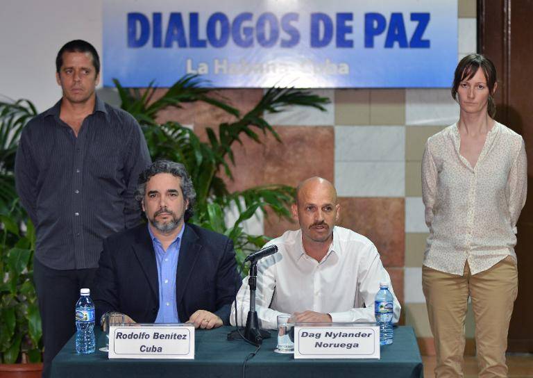 "La canciller llegará con el empresario Gonzalo Restrepo para integrarse al equipo negociador" del Gobierno, dijo la fuente a la AFP. Holguín y Restrepo fueron designados como delegados de paz del Gobierno la semana pasada por el presidente colombiano, Juan Manuel Santos, quien auguró que ambos "serán un gran aporte en este momento decisivo del proceso" de paz. Este equipo lo encabeza el exvicepresidente Humberto de la Calle. (Lea: Gobierno y Farc cruzan dardos pero seguirán negociando la paz) Las negociaciones de La Habana, iniciadas en noviembre de 2012, enfrentan su momento más duro, luego de que el Gobierno atacara posiciones de las FARC la semana pasada matando a unos 40 guerrilleros. Los rebeldes, que el 15 de abril habían matado a 11 militares en una emboscada, respondieron suspendiendo su tregua unilateral, vigente desde diciembre. Pese al recrudecimiento de las hostilidades, ambas partes han dicho que seguirán negociando para tratar de acabar el conflicto armado de medio siglo. Los países garantes del proceso de paz, Noruega y Cuba, llamaron este miércoles a ambas partes a hacer "esfuerzos" para salvar las negociaciones, y expresaron su "profunda preocupación por el actual escalamiento del conflicto armado en Colombia". (Columna: El hombre mediocre) La Unión Europea también pidió el miércoles a ambas partes que "sigan comprometidas a continuar las negociaciones" y dijo que además "deben adoptarse medidas concretas hacia una desescalada de la situación en el terreno". Desde el inicio las negociaciones en Cuba se desarrollaron en medio de hostilidades en Colombia, pero la tregua de las Farc y la suspensión de los bombardeos del gobierno (ordenada por Santos en marzo) habían reducido los combates y las bajas, que ahora han vuelto a aumentar. El conflicto colombiano ha dejado 220 mil muertos y seis millones de desplazados, y es el último conflicto armado en América. Actualmente se desarrolla el trigésimo séptimo ciclo de pláticas de paz, que debe culminar el domingo, dedicado a la discusión del sensible tema de reparación de las víctimas. Ambas partes han consensuado hasta ahora 3 de los 6 puntos de la agenda, además de un plan de desminado, que quedó paralizado con el recrudecimiento de las hostilidades.