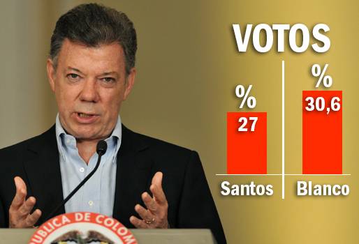 Faltando menos de dos semanas para vencerse el plazo para que Juan Manuel Santos anuncie si se va a lanzar a la reelección, la reciente encuesta Gallup indica que el voto en blanco obtendría el mayor índice de sufragios de los colombianos.
