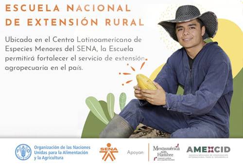 Con el fin de facilitar la formación y certificación de competencias laborales de los productores agropecuarios, el Sena y la FAO lanzaron la Escuela Nacional de Extensión Rural ubicada en el Centro Latinoamericano de Especies Menores del SENA en Tuluá, Valle.