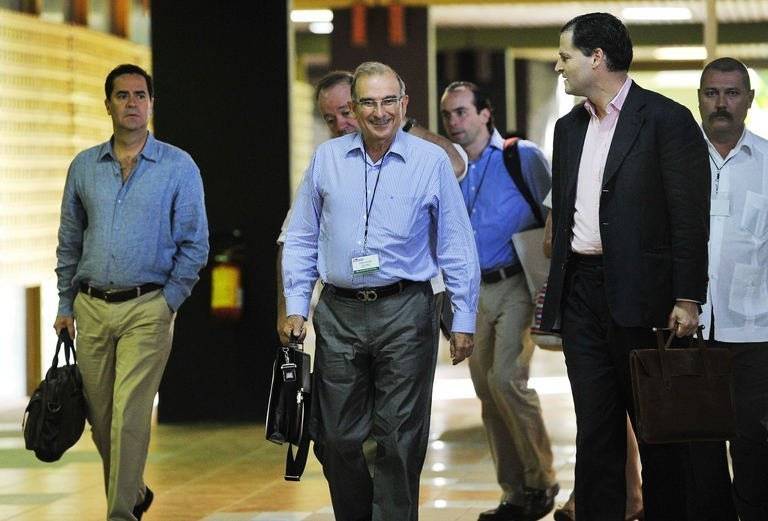 Los delegados del gobierno, encabezados por el ex vicepresidente colombiano Humberto de la Calle, llegaron al Palacio de las Convenciones mientras Hernández leía el comunicado, por lo que esperaron un momento en los automóviles, antes de ingresar al edificio apresuradamente sin hablar con la prensa.