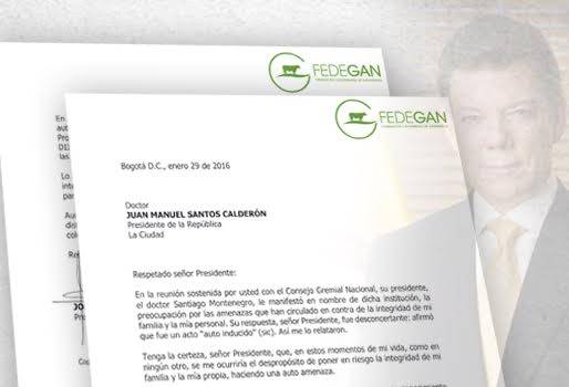 El presidente del gremio cúpula de la ganadería en Colombia señala en su misiva que le manifestaron que durante la pasada reunión del Consejo Gremial Nacional, el primer Mandatario calificó las amenazas como “auto inducidas”, algo que en su criterio no es desde ningún punto de vista razonable. (Lea: Amenazas contra Lafaurie persisten, lo mismo que silencio del Gobierno)