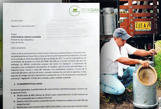 La carta preparada por la Cámara Gremial de la Leche de Fedegán en la que se exponen la dimensión de la crisis y algunas propuestas de solución desde la orilla de los productores, fue radicada ante la presidencia de la República el pasado viernes 30 de junio.