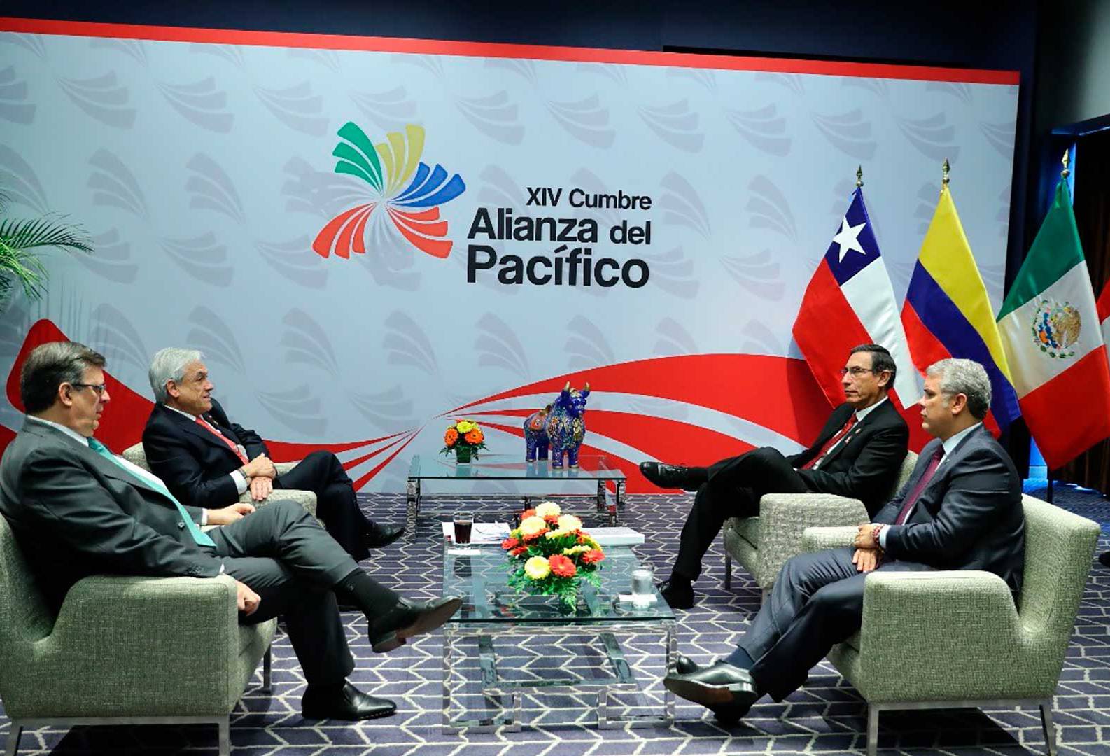 Ante los mandatarios de Perú, Martín Vizcarra, y de Chile, Sebastián Piñera, y del Canciller de México, Marcelo Ebrard, el presidente Iván Duque reiteró la decisión de Colombia de excluir el sector lácteo en las negociaciones de la Alianza del Pacífico con países que buscan ser Estados Asociados de este grupo de integración regional. (Lea: Presidente Duque da parte de tranquilidad a los lecheros respecto a la Alianza Pacífico)