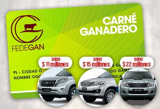 El carné ganadero sigue ampliando su portafolio de servicios y generando más y mejores alianzas para todos sus usuarios. Hoteles, seguros, un Agroparque y grandes descuentos de Carco Toyota son algunos de los beneficios que ofrece. El carné ganadero sigue buscando la manera de brindarles a los productores de todo el país la posibilidad de acceder a grandes descuentos. A los convenios que hasta el día de hoy se vienen ofreciendo se suman promociones especiales como la que este mes de junio lanzó Carco Toyota. (Lea: 7 servicios que tienen grandes descuentos con su carné ganadero) Al descuento del 10 % que existe actualmente para la compra de cualquier vehículo de la marca presentando el carné ganadero se suman los bonos de descuento que se aplican durante este mes. De esta manera, para aquellos que se están interesados en la Toyota Prado hay un bono de descuento de 15 millones, de 11 para los que prefieren la Fortuner Urbana y de 22 si la opción es la Hilux 2.5 diésel. Otros convenios que usted puede disfrutar con el carné ganadero El Hotel Victoria Regia, ubicado en Puerto Asís Putumayo, decidió aliarse con el gremio cúpula de la ganadería en Colombia para ofrecer a quienes cuenten con el carné descuentos en hospedaje, el restaurante-bar y la discoteca. Por su parte, el Agroparque Las Villas, un espacio de ocio y entretenimiento para grandes y niños decidió ofrecer descuentos de hasta el 50 % para quienes deseen alojarse en sus instalaciones. Tienen también la opción de pasadías y recorridos a fincas del sector agropecuario. (Lea: Renueve su carné ganadero y obtenga grandes beneficios) El Grupo Recordar S.A.S, reconocido por su amplia trayectoria en servicios exequiales, le brinda el 12 % de descuento a las personas que presenten el carné ganadero en el momento de adquirir la afiliación anual. Por último, Surtirepuestos el Desvare, local que se encuentra en Puerto Asís, entregará un 10 % de descuento en balineras, rodillos, aceites, filtros, llantas, neumáticos y todo lo relacionado con muelles y tornillerías en general. ¿Cómo solicitar el carné? Cuando una persona se afilia a un gremio, este se encarga de hacer llegar sus datos a Fedegán para que se le tramite el documento. (Conozca todos los convenios que ofrece el carné ganadero) Si el ganadero no se encuentra afiliado puede hacerlo a través de su proyecto local e incluso directamente con el gremio solicitándolo al correo [email protected] o llamando al teléfono (1)5782020 ext 227. Erika Bernal, encargada de las alianzas y convenios que tiene la Federación Colombiana de Ganaderos, aseguró que el gremio está siempre dispuesto a renovar los convenios actuales y abierto a la posibilidad de aquellas empresas interesadas en acercarse a los productores bovinos del país. Si usted o su empresa están interesados en ponerse en contacto en ella pueden hacerlo escribiendo al mail [email protected] o en el teléfono (1)5782020 ext 120.