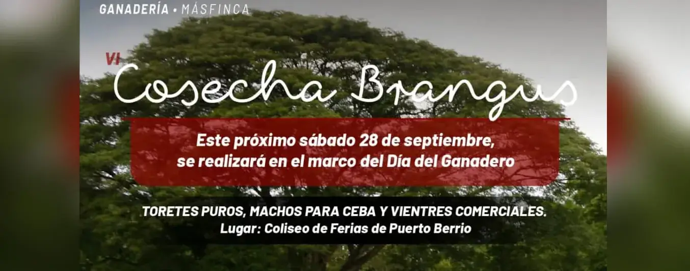 La Asociación Angus & Brangus de Colombia y Sugaberrío organizan, para el próximo 28 de septiembre, un evento que se ha convertido tradición: la Cosecha Brangus en Puerto Berrío (Antioquia). Previo a este encuentro, que ya va en su cuarta versión, se realizará un día de campo en la Hacienda El Diamante de Más Finca Ganadería. No pierda una oportunidad invaluable para los ganaderos que buscan mejorar la calidad de su hato, con toretes puros, machos para ceba y vientres comerciales de alto rendimiento.