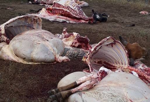 Delincuentes ingresaron a una finca en zona rural del municipio de Calamar y pelaron a varios animales. Algunas versiones hablan de 9 animales, otras de 24, incluidos toros puros. Hay temor en la zona por incremento del abigeato. Como lo reportó El Universal, el hecho se registró la noche del pasado miércoles 4 de abril, cuando hacia las 9 de la noche, varios sujetos entraron al predio y mataron a los animales para robarles la carne. (Lea: Ganaderos siguen preocupados por abigeato en Depresión Momposina) La finca está ubicada entre los municipios de Calamar y Arroyohondo, una zona donde los pequeños y medianos productores han denunciado la inseguridad que impera a pesar de las acciones de la Fuerza Pública. De acuerdo con este medio, los delincuentes tenían todo planeado y se llevaron la carne en un furgón, que fue visto hacia las 10 de la noche por testigos que afirmaron que un vehículo de ese tipo había entrado al sector. El dueño de la finca, de 64 años, fue consultado por el periódico, y lamentó que los cuatreros se hubieran adentrado a su finca a robarle lo poco que tenía. (Lea: Denuncian constantes robos de ganado y sacrificio clandestino en Mompox) “Nadie dijo nada, pero a los vecinos se les hizo raro porque los carros que van a vender cosas solo entran al sector en las mañanas. Solo me quedaron tres vacas. Las que mataron eran lecheras y cuatro de ellas estaban preñadas. Prácticamente vivo de eso”, dijo. El caso fue replicado por el presidente ejecutivo de la Federación Colombiana de Ganaderos, Fedegán, José Félix Lafaurie, quien publicó en Twitter las imágenes de las carcasas tiradas en el suelo, y manifestó su profundo malestar por un nuevo caso de inseguridad rural. “El abigeato y el sacrificio ilegal se tomó el país. Entretanto las autoridades miran para otra parte. Fedegán está cansado de denunciar esta bárbara práctica en boga en todas partes”, declaró. (Lea: Robos de ganado en Bolívar no cesan a pesar de las denuncias) También hay un video grabado donde se observa el panorama desalentador, donde el autor observa con rabia e impotencia a toros puros de altísimo valor, en los que invirtió esfuerzo, tiempo y dinero, y que en menos de 2 horas quedaron convertidos en huesos y vísceras desechados.