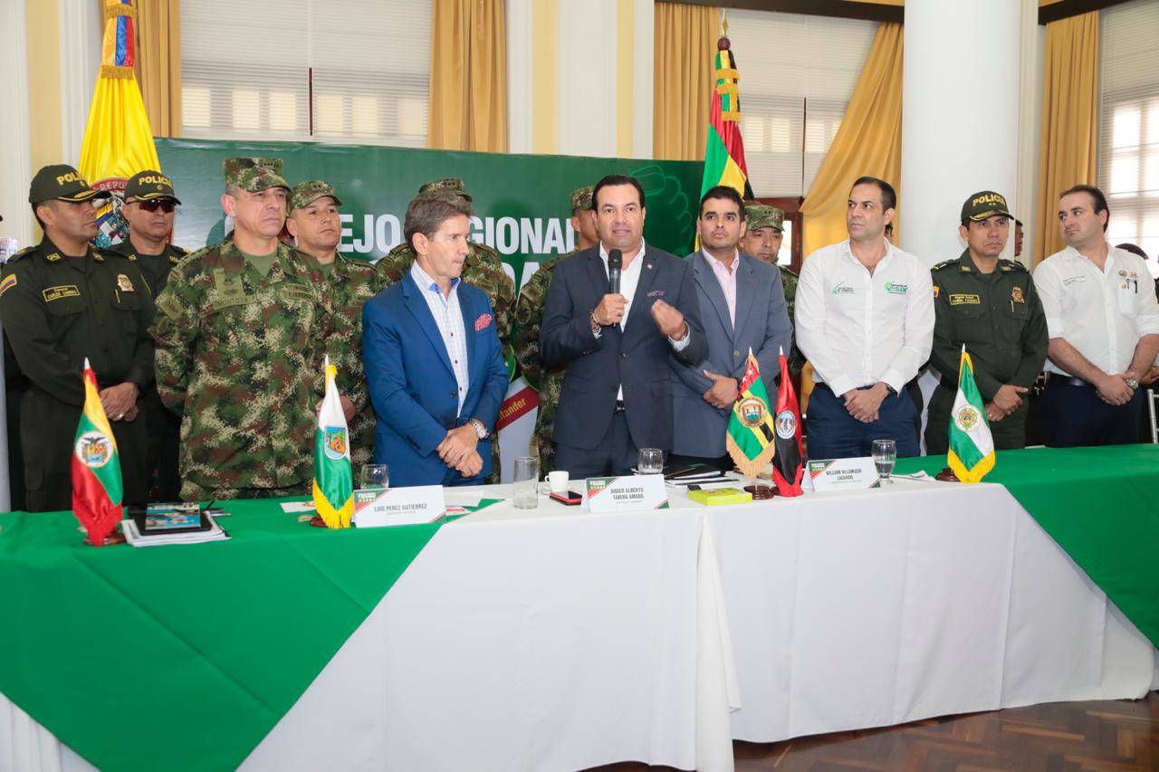 El gobernador recordó que se tienen problemas comunes de orden público entre los departamentos de Santander, Norte de Santander, Bolívar y Antioquia, y por eso hay que hacer consejos de seguridad como el que se celebró para estas cuatro regiones.