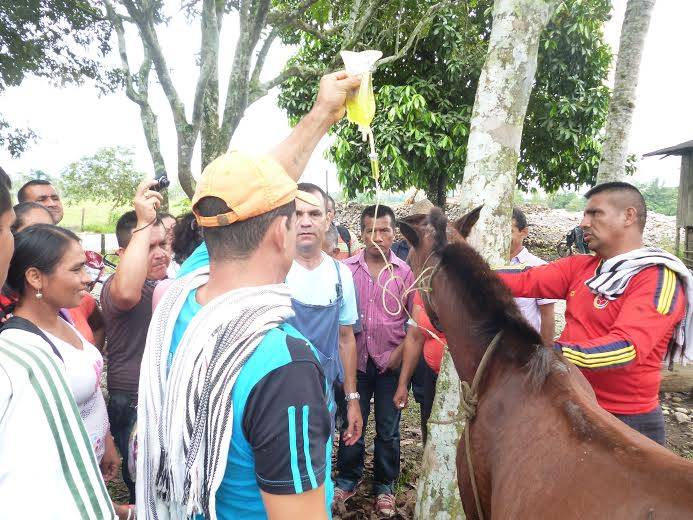 La pate práctica de la jornada permitió que los 42 ganaderos aprendieran la forma correcta de canalizar las venas en los bovinos y equinos, y de igual manera a realizar adecuadamente una prueba de mastitis.