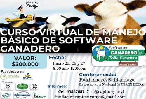 La Fundación Capitán Yunyi organiza este curso que se llevará a cabo del martes 15 al sábado 19 de junio bajo modalidad virtual con todo lo que necesita saber sobre el Software Ganadero para llevar los datos de su finca.