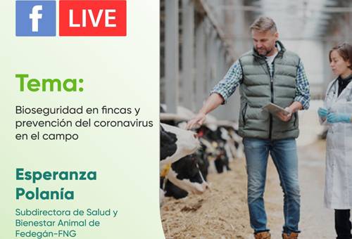 Por este motivo, Esperanza Polanía Pardo, subdirectora de Sanidad Animal de Fedegán-FNG, será la encargada de dictar una charla sobre bioseguridad en fincas y prevención del coronavirus en campo que será transmitida a través de Facebook Live para todos los interesados.