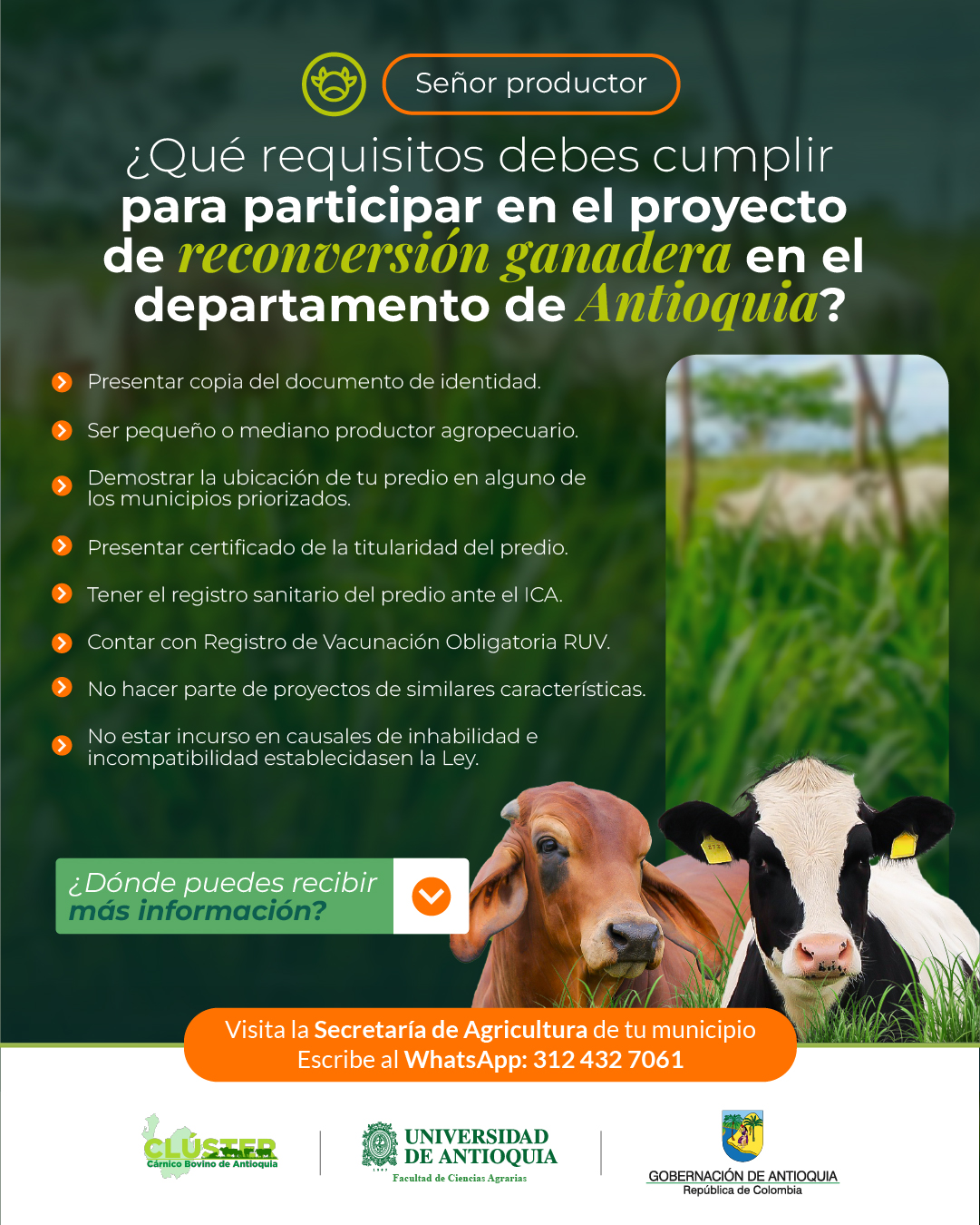 “Invitamos a los ganaderos a que se sumen. Nuestro primer canal de comunicación es la Secretaría de Agricultura, las Umatas o los representantes de los gremios”, añadió Meneses.