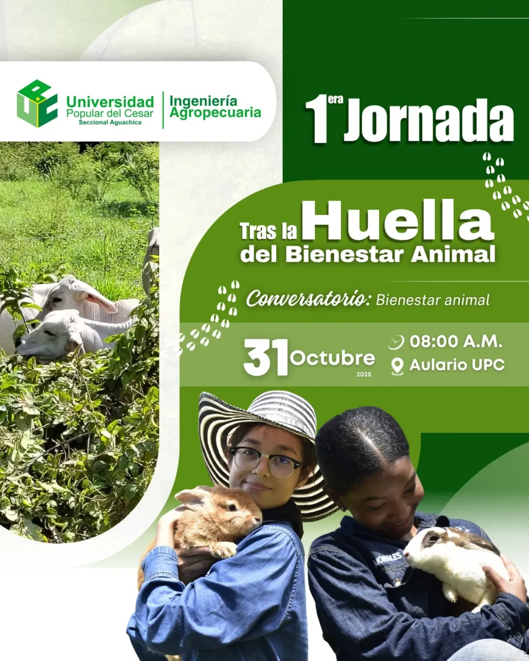 El viernes 31 de octubre, Aguachica se convirtió en epicentro de un diálogo fundamental para el futuro del campo colombiano. Durante la 1ª Jornada “Tras la Huella del Bienestar Animal” organizada por la Universidad Popular del Cesar (UPC), la Secretaría Técnica de Cesar-Aguachica tuvo una destacada participación como panelista en un espacio que reunió a más de 90 asistentes, entre estudiantes, ganaderos y miembros de la comunidad.
