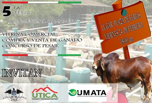 Este viernes 24 de febrero se realiza la 5ta feria comercial ganadera, una vitrina comercial para los productores de la región así como un espacio para vender y comprar ganado de variadas razas y cruces. En esta versión, los organizadores han apuntado a desarrollar un espacio “netamente comercial”, como lo afirmó Juan Manuel Mahecha, director de la Unidad Municipal de Asistencia Técnica Agropecuaria, Umata, de Útica, en Cundinamarca. A diferencia de la Gran Feria Ganadera Regional que se llevó a cabo en marzo del año pasado, el funcionario precisó que se trata de un evento en el cual los ganaderos podrán comercializar sus animales. (Lea: Útica, Cundinamarca, se viste de ganadería) Añadió que se trata de un evento donde los productores traerán ejemplares de diferentes zonas del municipio y aledaños como Caparrapí, Guaduas, Quebradanegra, Nimaima, Tocaima, Vergara, San Francisco, Dorada y Villeta. “Útica es un centro ganadero donde los propietarios tendrán la oportunidad de traer sus animales de diferentes razas como Brahman, Senepol, Brangus y Braunvieh”, precisó. De acuerdo con Mahecha, el comprador podrá adquirir vacas paridas, terneros destetados, novillos y lotes de terneras. (Lea: Ganaderos de Útica conocerán bondades de razas bovinas de carne) “Básicamente es una vitrina comercial para abrirle el espacio a los compradores y obviamente a los ganaderos que quieren ofrecer sus animales”, añadió. Asimismo, se abrirán espacios para las diferentes casas comerciales del sector que venden sus productos, en especial los laboratorios que ofrecen su catálogo de medicamentos disponibles para tratar a los rumiantes. Ese día esperan recibir entre 300 y 400 animales. Adicional a esto, quieren que los propietarios de ganado extiendan lazos y hagan contactos con productores de otras regiones del país. (Lea: Este 2017 viene cargado con los mejores eventos ganaderos) Fue organizada por la Alcaldía, la Umata y contará con la participación de productores del municipio, como Hernán Olaya, quien se refirió a Útica como una “despensa ganadera”. “Invitamos a todos los ganaderos de la región del Gualivá y de otros pueblos como La Palma, Yacopí y los alrededores”, dijo. Luego de esta jornada, se realizarán otras 5 ferias con el objetivo de fortalecer las relaciones comerciales entre los productores y motivar el comercio de ganado. En junio tendría lugar la Gran Feria Regional del municipio, que en 2016 se realizó en el mes de marzo. (Lea: Estas son las 10 ferias ganaderas más importantes del mundo) “Nosotros nos preocupamos más por el productor, por traerles como hicimos el año pasado otras asociaciones que muestren sus experiencias ganaderas. Nos aliamos con agro puntos para que muestren las innovaciones y las tecnologías que hay en el mercado, así como expertos que nos hablen de sistemas silvopastoriles. En fin, todo lo que requiere el ganadero para ser más competitivo en el sector”, remató Mahecha. La quinta feria comercial se llevará a cabo en la plaza de ferias del municipio de Útica. Si usted desea conocer más sobre este evento, puede comunicarse al 313 4608698.