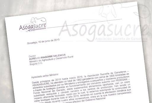 La Asociación sucreña de ganaderos le pidió al ministro de Agricultura, que ante los buenos resultados que han obtenido con el desarrollo de esta iniciativa, considere la posibilidad de extenderla por lo que resta de 2015. El pasado 10 de junio, uno de los gremios ganaderos más representativos de esta región del país, una de las que más se ha visto perjudicada por el verano que desde hace varios meses se vive en el Caribe colombiano, envió una carta a Aurelio Iragorri Valencia, ministro de Agricultura y Desarrollo Rural en la que le piden considerar la opción de extender el programa de suplementación bovina. “Estamos solicitando la continuidad de estas bodegas durante todo el año 2015, teniendo en cuenta la afectación climática que se viene dando durante 4 años consecutivos, crisis en la que nuestro campesinado espera seguir recibiendo un apoyo efectivo del Gobierno Nacional”, sostuvo Gabriel de la Ossa, presidente del gremio y quien firmó la misiva. (Lea: Piden al MinAgricultura programas de suplementación bovina) En la comunicación también se describe que desde principios de 2010 y hasta marzo de 2015, Asogasucre ha atendido un total de 1.862 ganaderos con cerca de 1.600 toneladas de alimentos subsidiados por el Ministerio. Según de la Ossa, los suplementos alimenticios con un costo subsidiado asequible, que han sido entregados a pequeños y medianos productores a través de las bodegas, y al convenio suscrito con Fedegán-FNG, “han tenido un impacto altamente favorable”. (Lea: Piden al ministro Iragorri bodegas ganaderas en Cundinamarca) Otra de las ventajas que menciona el documento como favorable de estos espacios es su ubicación, cercana a los centros de producción de la región. Según las cifras reveladas por la Federación Colombiana de Ganaderos, Fedegán, hasta el pasado 9 de junio habían muertos en esta región del país 5.216 animales y más de 253 mil tuvieron que ser desplazados tratando de ofrecerles mejores condiciones, una situación que resulta más delicada si se tiene en cuenta que Sucre es por excelencia uno de los lugares predilectos de los productores para hacer la trashumancia. La carta se une a las que en el mismo sentido han sido enviadas por El Comité de Ganaderos de Chiriguaná, la Asociación de Ganaderos del San Jorge, la Federación de Ganaderos de Boyacá y la Asociación de Ganaderos del Valle de Ubaté, entre otras.