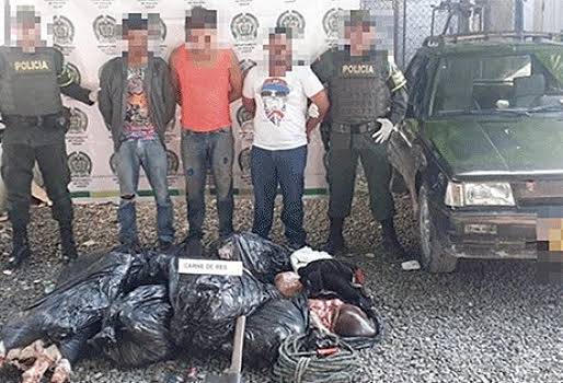 Sin embargo, esa versión generó suspicacia entre los policías, por lo que realizaron un barrido por las fincas cercanas al lugar de donde estos habrían salido, esto los llevó a encontrar en unas de ellas, partes de las reses las cuales fueron sacrificadas presuntamente por los ocupantes del vehículo.