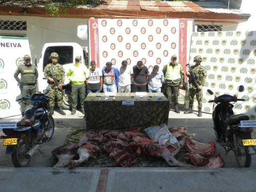 Según las autoridades, al parecer, momentos antes, en la vereda el Cauchito del municipio de Aipe, los sujetos hurtaron dos vacunos, utilizando la modalidad de carneo. Al inspeccionar el interior del vehículo se verificó que en su interior se transportaban 1.250 libras de carne de res.