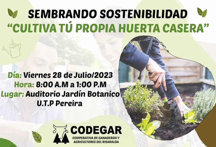 La Cooperativa de Ganaderos y Agricultores de Risaralda realizará el evento Sembrando Sostenibilidad “Cultiva tu propia huerta casera” este viernes 28 de julio. En esta jornada los asistentes aprenderán las claves para tener sus propios cultivos con el fin de tener un alivio económico a la hora de comprar alimentos.