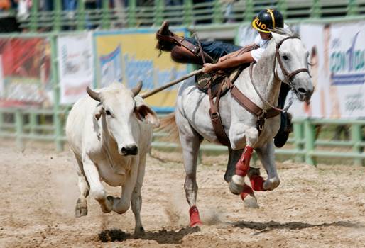 Jinete, caballo y toro son los invitados a esta cita donde la velocidad, destreza y habilidad son requisito para destacarse. El objetivo es que el hombre que va montado en la bestia derribe lo más rápido posible al bovino halándole la cola.