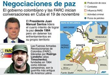 BOGOTÁ (AFP) - Desgastados tras medio siglo de conflicto armado, el más largo de América Latina, los colombianos aguardan con expectativa el inicio de los diálogos de paz en La Habana entre el gobierno del presidente Juan Manuel Santos y la guerrilla FARC, pese a que las pláticas no implicarán una tregua.